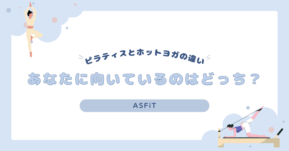 今回は、ピラティスとホットヨガの違いについて、マシンピラティス&パーソナルジム ASFiT【医療提携】(アスフィット)がご紹介します!