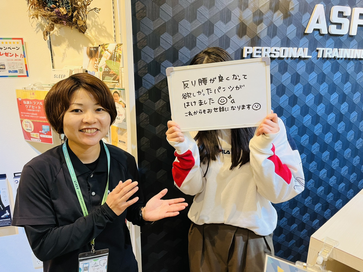 アスフィットは完全個室のマンツーマン指導なので、運動に慣れていない方や運動が苦手な方にも安心して通っていただけます。