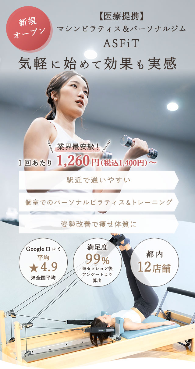 マシンピラティス&パーソナルジム ASFiTは男性でもご利用可能です。個室でのピラティス&トレーニングなので、男性でも女性でも周りの目を気にせずご利用いただけます。